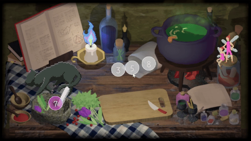 "Your task is simple: make the magic number 10 using 4 gems. Just 10, nothing else matters. Use the mystical tools and the help of your fairy friends." – Author's description